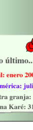 Brasil: enero 2006 Nuestra granja: 2005 Laguna KarŽ: 31 de julio, 2004 Album de fotos: Julio 2005 Brasil: enero 2006 Nuestra granja: 2005 Laguna KarŽ: 31 de julio, 2004 Album de fotos: Julio 2005 Brasil: enero 2006 Nuestra granja: 2005 Laguna KarŽ: 31 de julio, 2004 Album de fotos: Julio 2005